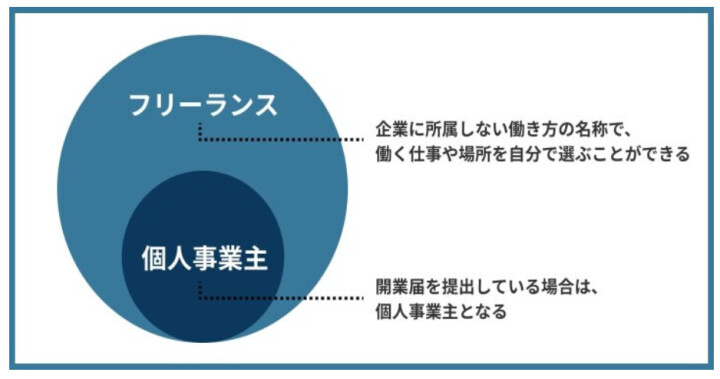 ただし、明確な違いとして、個人事業主は開業届を提出する必要がある一方で、フリーランスを名乗るための特別な申請は不要です。よって、フリーランスの中でも開業届を提出している人を個人事業主と呼びます。