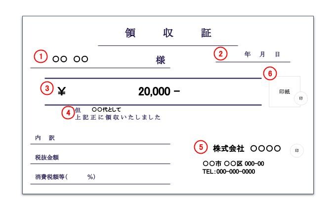 よくある領収書の例を見ながら、記載項目を確認していきましょう。